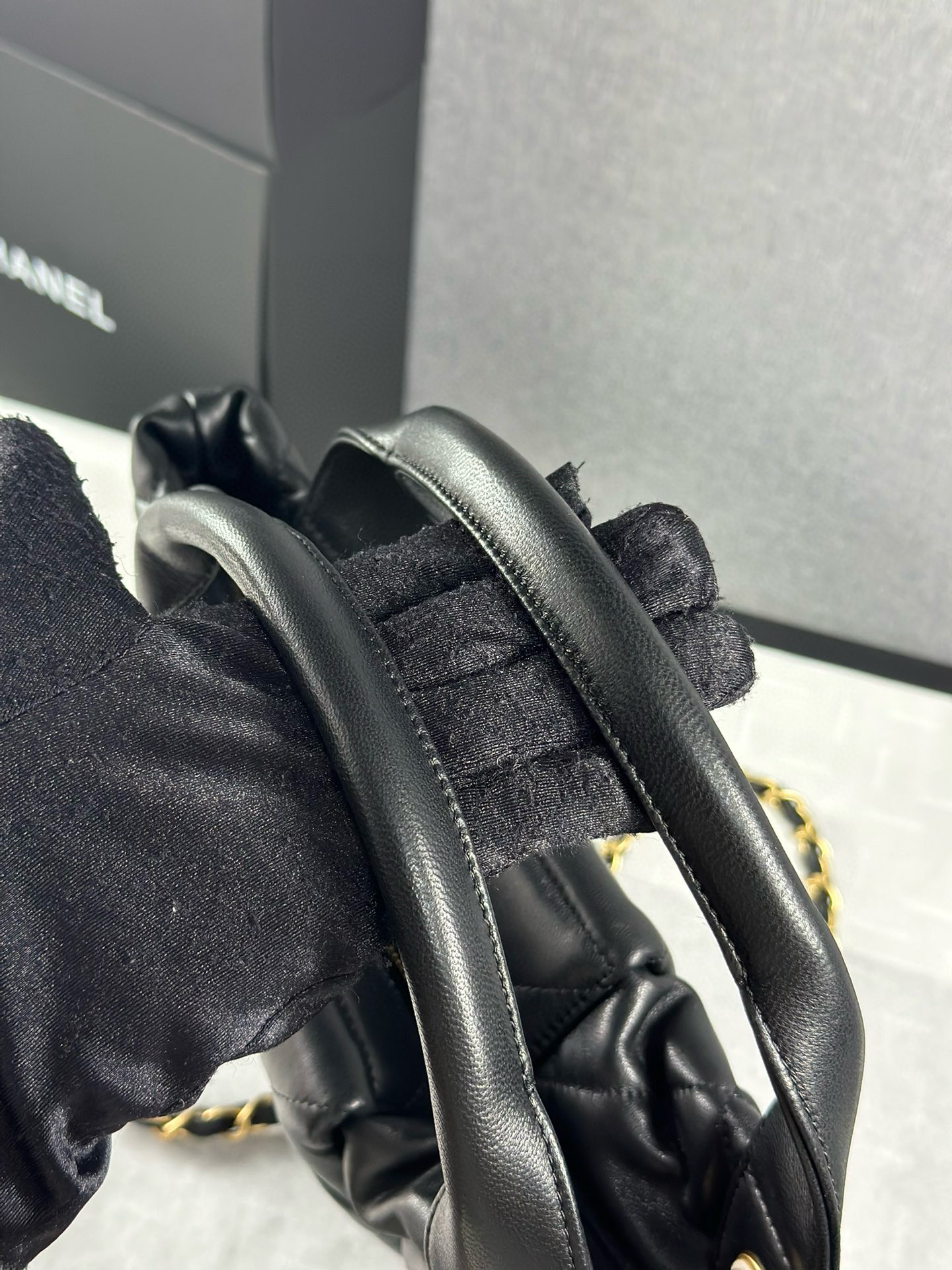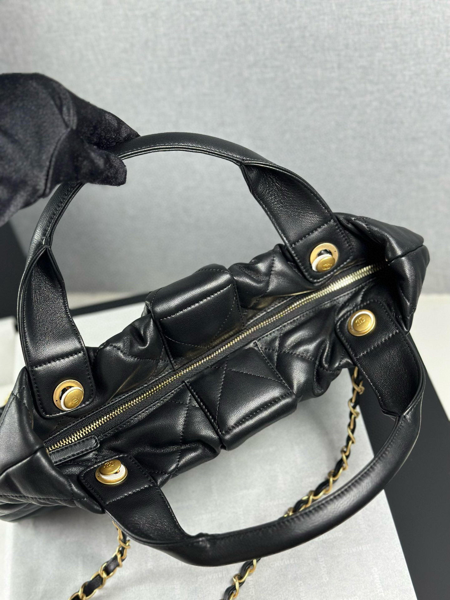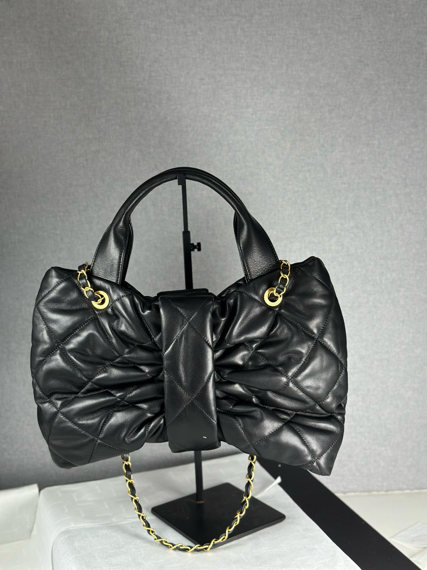 25K الخريف والشتاء المتقدمة سلسلة حقيبة قشرة اليد ❤️ جلد الخراف الأسود متوسطة الحجم